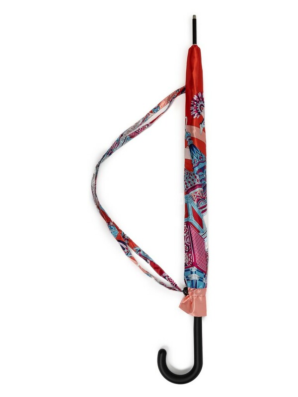Женский зонт-трость, полуавтомат торговой марки ELEGANZZA. Материал купола: 100% полиэстер, сатин. Материал каркаса: сталь + фибергласс. Материал ручки: пластик. Длина изделия - 86 см. Диаметр купола - 101 см.